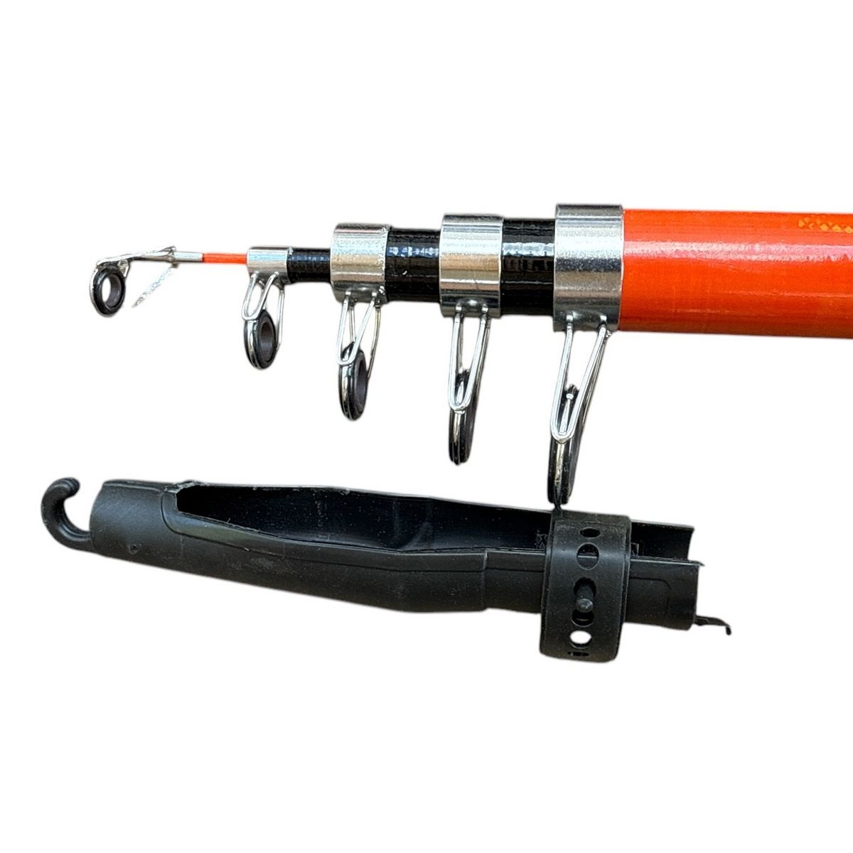 Вудка має телескопічний пристрій і компактно складається до довжини 115 см. Кріплення котушки - різьбове, 5 кілець з вставками SIC. Ручка пластикова. Вудка поставляється із захисним ковпачком.