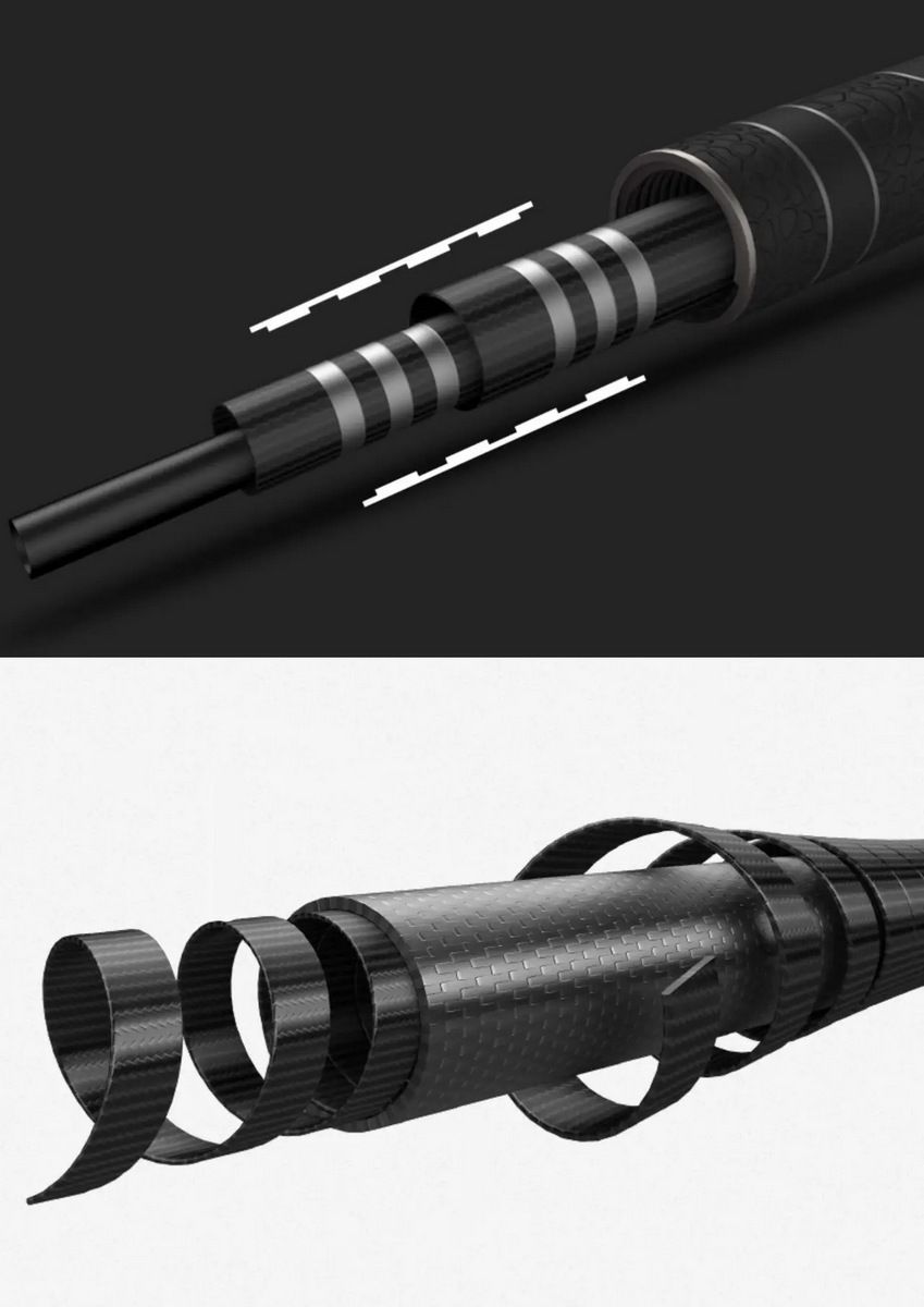 Карбонова конструкція поєднує легкість, збалансованість та жорсткість, забезпечуючи точність та зручність при закиданні.
