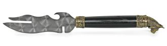 Виконує відразу кілька функцій: служить як ніж, вилка для зняття м'яса, відкривачка, для чищення шампурів.