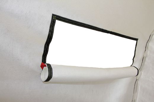 Можливість відстібати стельову частину внутрішнього тенту дає доступ до механізму складання намету, що дозволяє складати намет разом із внутрішнім тентом.
