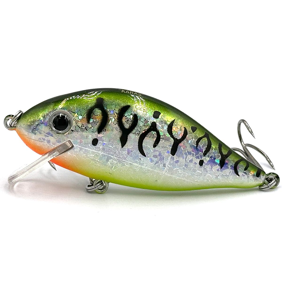 Воблер Gladiator Karas – своєю формою нагадує карасика чи густеру. Найбільш результативний при використанні на зарослих мілководдях з глибинами до 2 метрів як з берега, так і з човна. Також можна використовувати при тролінгу на глибинах від 2 до 4.5 метрів. Має активну власну гру, яка робить його уловистим як на рівномірній проводці, так і на проводці з короткими паузами чи зупинками. Оснащений шумовою камерою для більшого залучення хижака. Вдало застосовується для лову щуки та окуня.