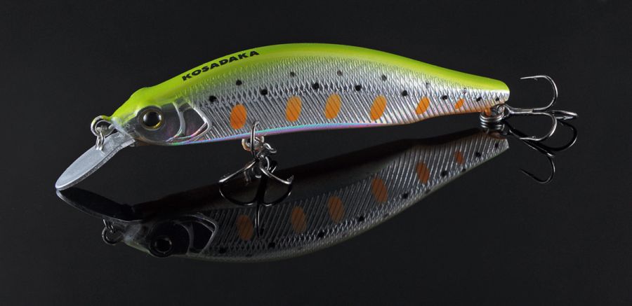 Універсальний в застосуванні мінноу Kosadaka Baywolf XS 82F грає в середньому ваговому діапазоні асортименту воблерів Kosadaka. Модель здатна проявити себе в будь-який відрізок сезону, будь то зимова відлига або літня спека. Завдяки сплюснутому з боків тілу і різноманітному характеру рухів приманка працює в комбінації потяжек і ривків. Мінноу Kosadaka Baywolf XS 82F має систему далекого закидання, шумова камера воблера рекомендована для пошуку як пасивного, так і активного хижака.