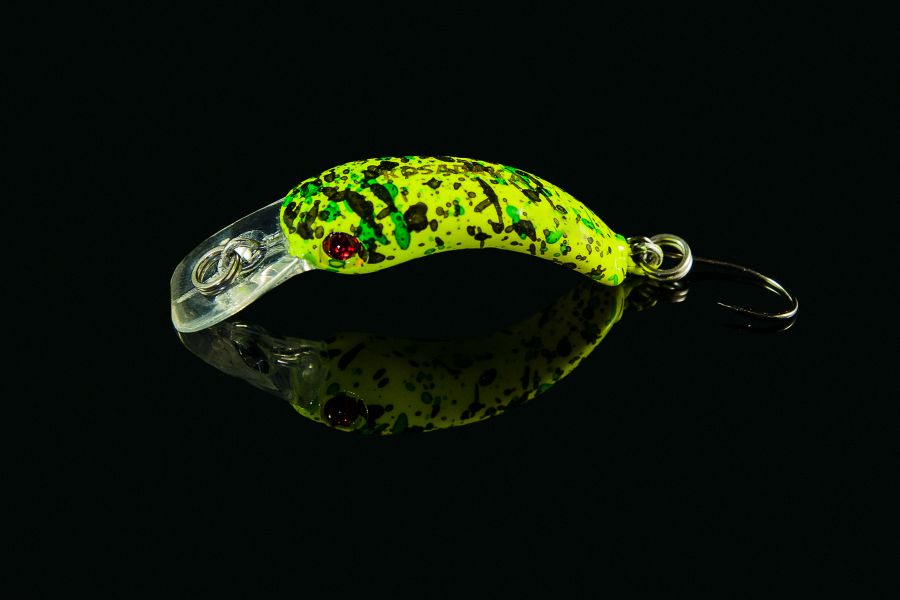 Має модель позитивну плавучість, що дозволяє на паузі в анімації проводити воблер над острівцями рослинності. Гра його дуже активна на простій рівномірній проводці. Корпус динамічно коливається, гойдається, створюючи помітні для підводних жителів збурювання середовища. Оснащується модель гострозаточеним одинарником з борідкою, який надійно утримає видобуток, що клюнув.