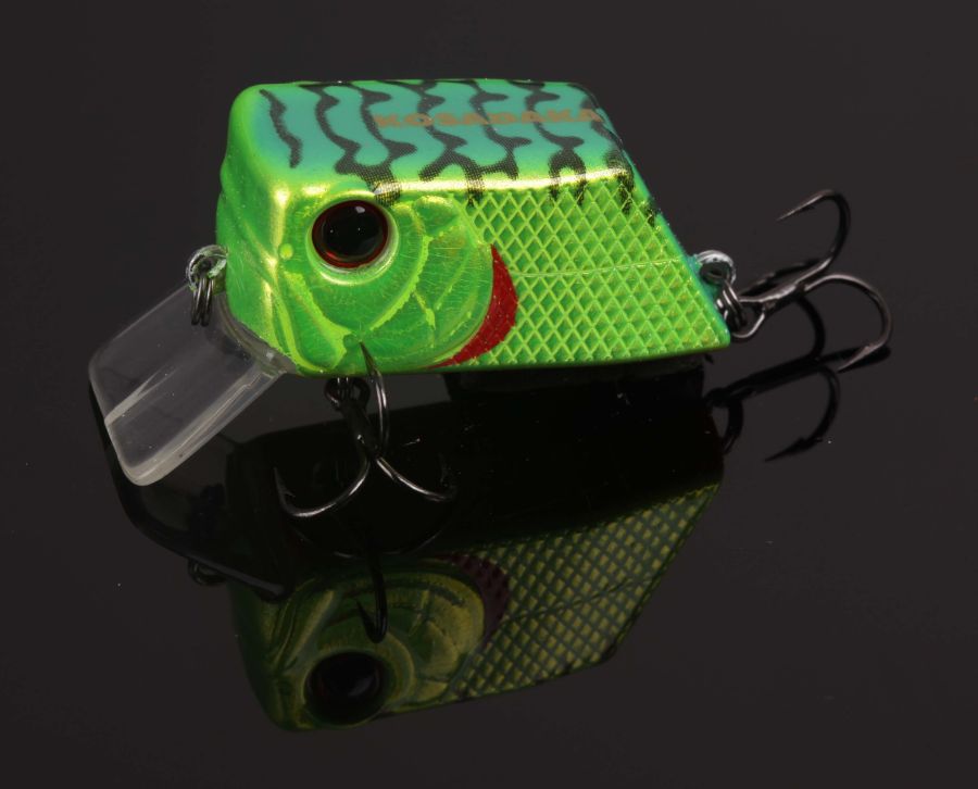 Перше що впадає в очі в цій приманці, це, звичайно ж, нестандартна, вражаюча геометрія: маленькі габарити, плеската мордочка і квадратна, незграбна, форма тіла. Однак, не дивлячись на такі мініатюрні характеристики, воблер відрізняється дуже гарним лобовим опором: він напористо жене хвилю, переміщаючи значну кількість води, завдяки чому здатний потрапити в бічний зір хижака і зацікавити його навіть з досить великої відстані. Зовні він нагадує невеликого, вгодованого малька. Володіє неспішною розмашисто грою навіть на рівномірній проводці, урізноманітнити, яку можна ривками або потяжками.
