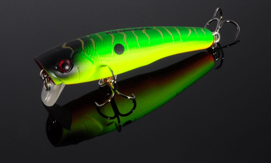 Рекомендована техніка лову: Хлистик вгору, короткі ривки і у вас Поппер. Варто тільки опустити хлистик і почати більш активну проводку, воблер піде під поверхнею