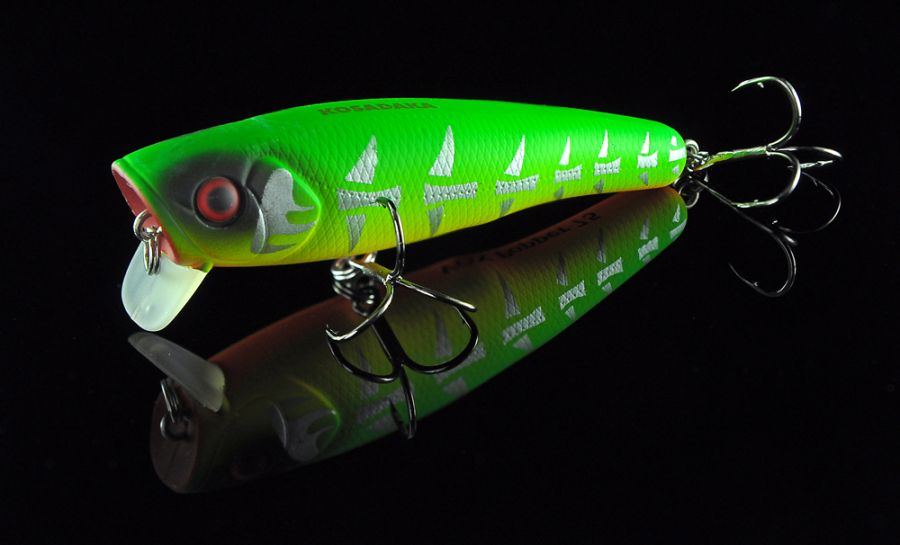 - Рекомендована техніка лову: Хлист вгору, короткі ривки і у вас поппер. Варто тільки опустити хлист і почати активнішу проводку, воблер піде під поверхнею