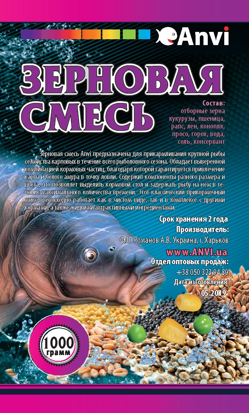 Зернова суміш Anvi призначена для підгодовування великої риби сімейства коропових протягом всього риболовного сезону.