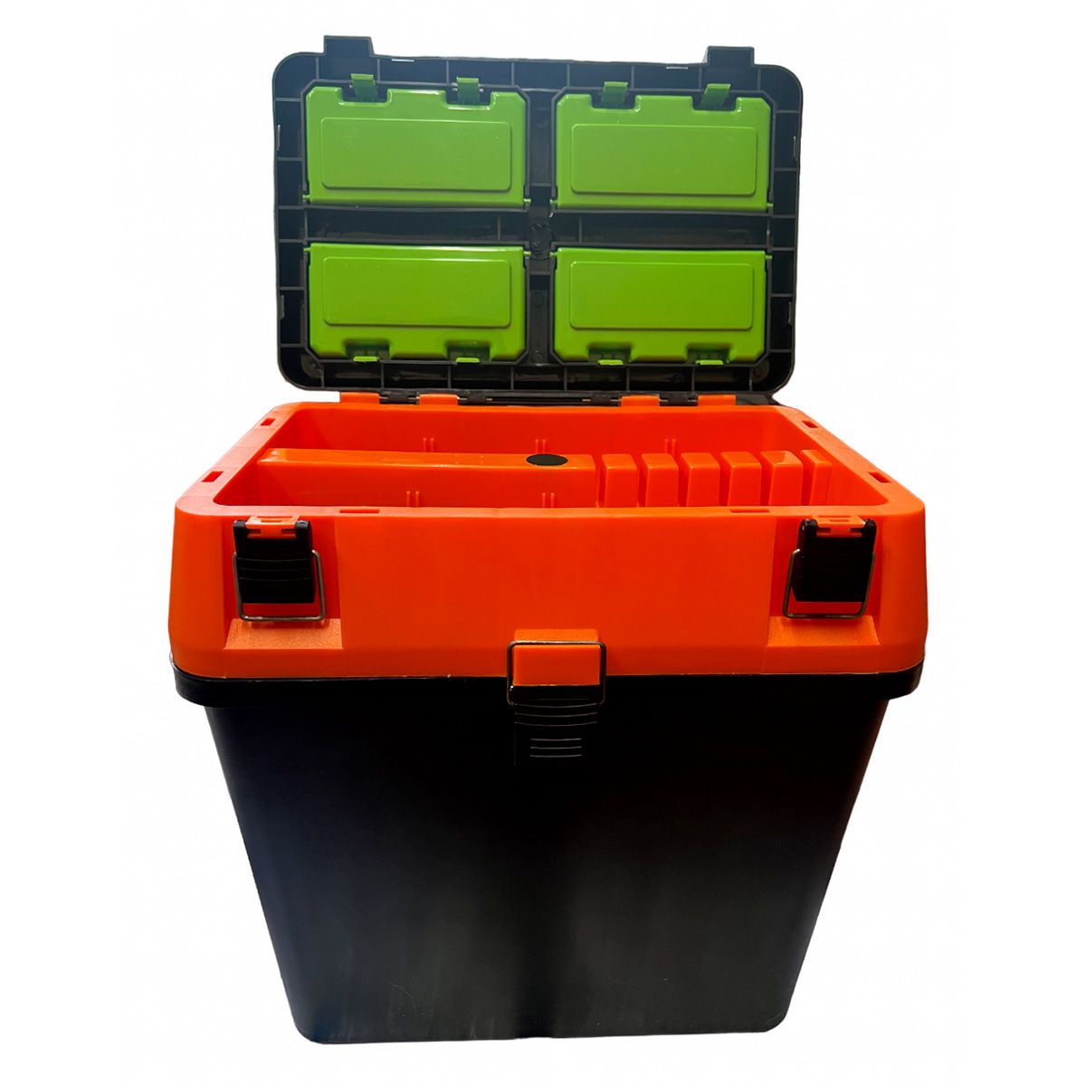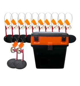 Зимовий набір: Жерлиця з гальмом оснащена 10 шт. + Ящик зимовий 18 л - Чорно- помаранчевий