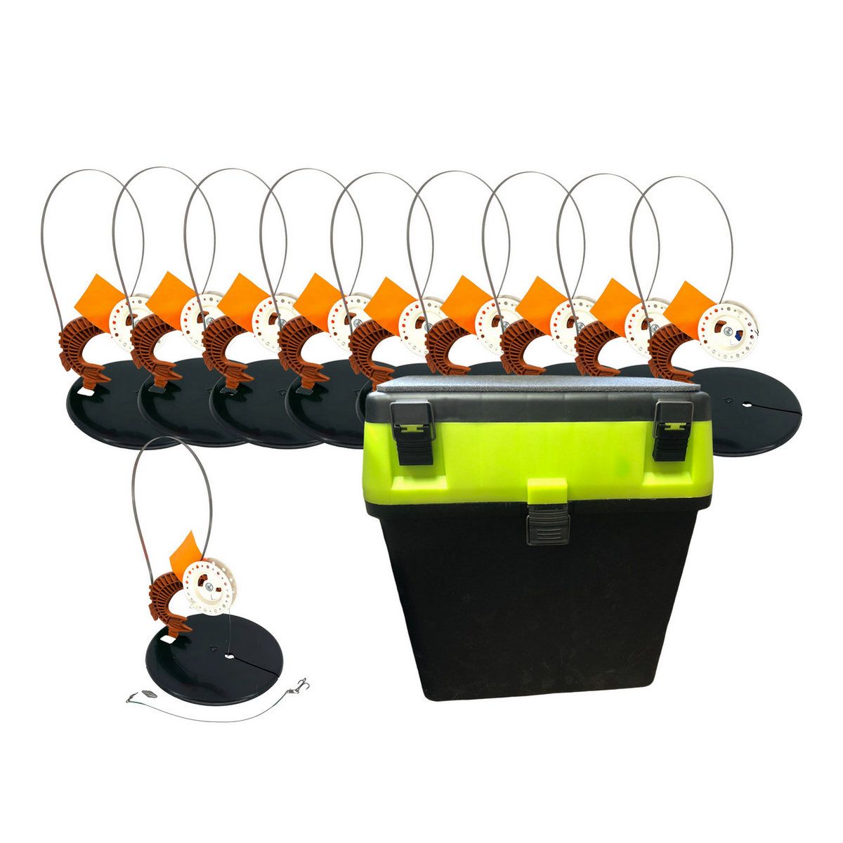 Зимовий набір: Жерлиця Щука 10 шт. + Ящик зимовий 18 л - Чорно-салатовий