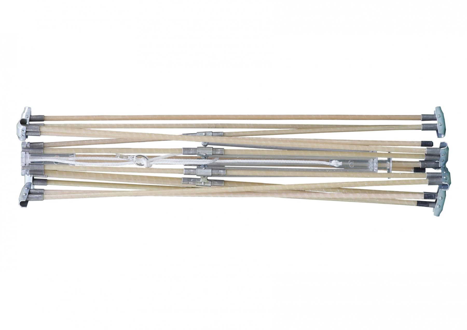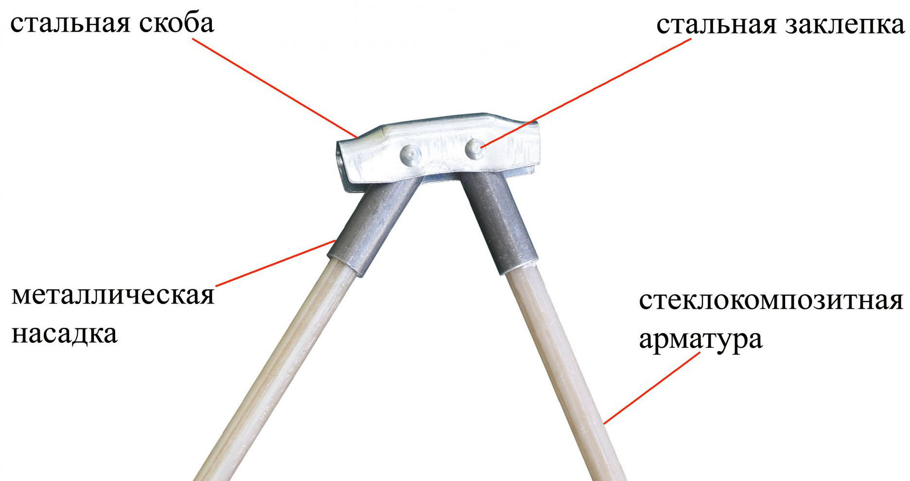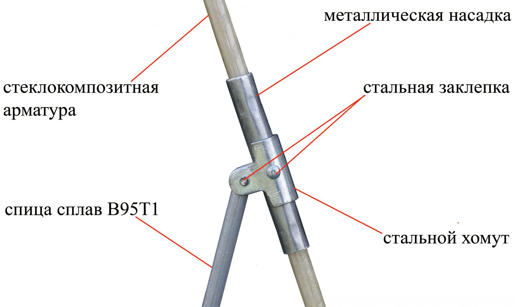 Склокомпозитні ребра захищені напресованими на них металевими насадками у вигляді трубок для надійної фіксації ребер в шарнірних вузлах дуг каркаса. Фіксують шарнірні елементи (скоби і хомути) виготовлені зі сталі товщиною 1,5 мм. Осі шарнірних вузлів виконані з цілісних сталевих заклепок діаметром 3,0 мм.